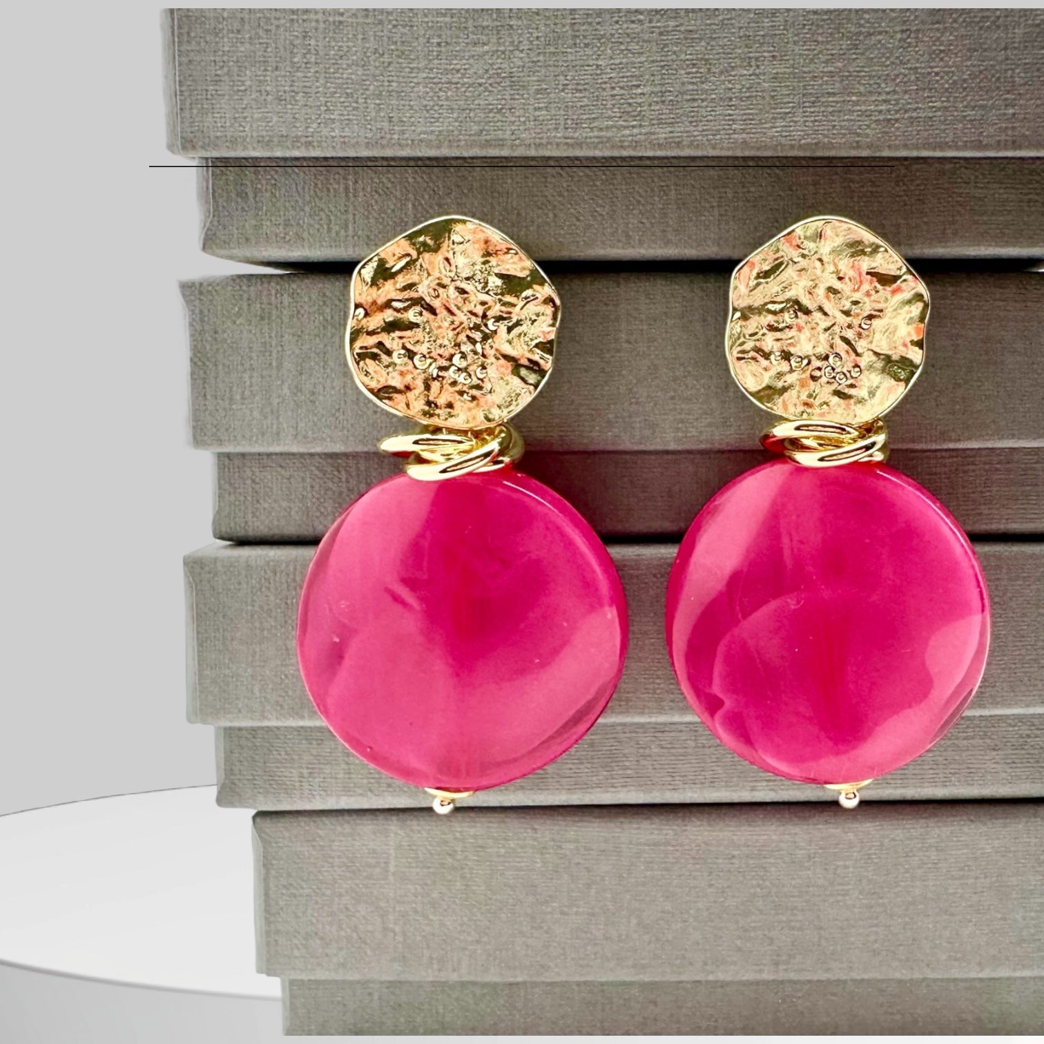 - Design: runde Hänger aus Resin Acryl mit goldfarbenen Steckern