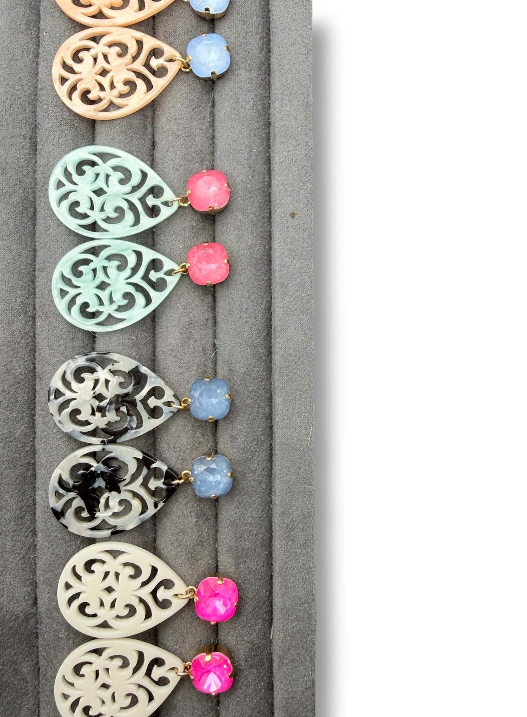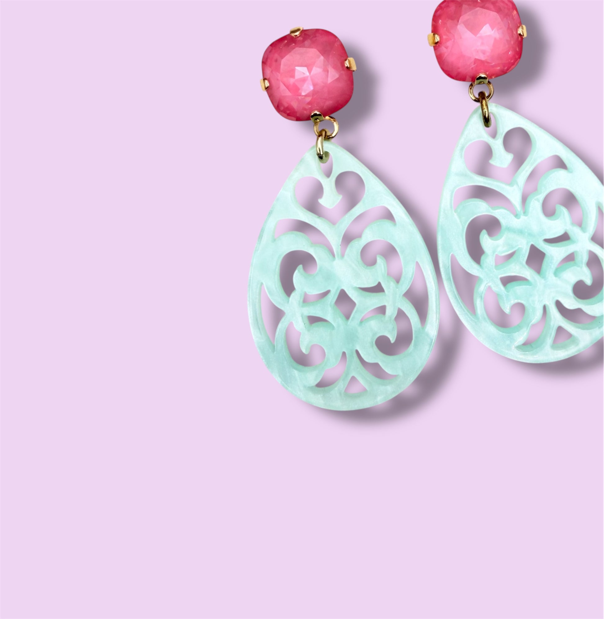 - Design: Ornament Tropfen-Hänger aus Acryl an funkelnden, pinken Steckern